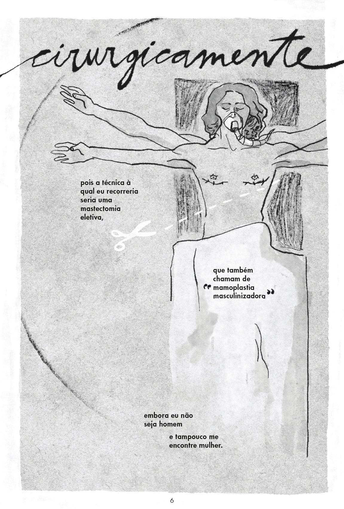 Não foi só do gênero que Vitorelo abdicou. FILOSOFIA DO MAMILO é um quadrinho autobiográfico que trata de quando ele decidiu fazer uma mastectomia eletiva – ou “mamoplastia masculinizadora” – e eliminar uma característica feminina do próprio corpo.