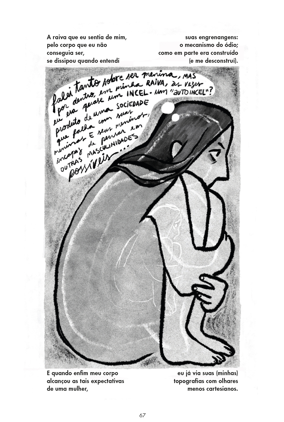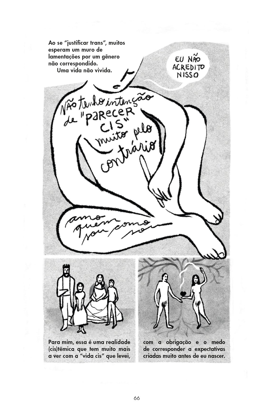 “Parte da minha frustração com todo esse sistema é que ele realmente não te permite muito espaço para duvidar: você precisa ter certeza do que é e do que quer, porque a incerteza te faz correr o risco de perder acesso aos seus direitos. O espaço da dúvida é um privilégio que fica reservado às hegemonias identitárias. Isso me preocupa especialmente em relação às crianças trans e às crianças que só querem experimentar com gênero, independente do que elas sejam, já que hoje o tema virou um campo de disputa acirrado.”