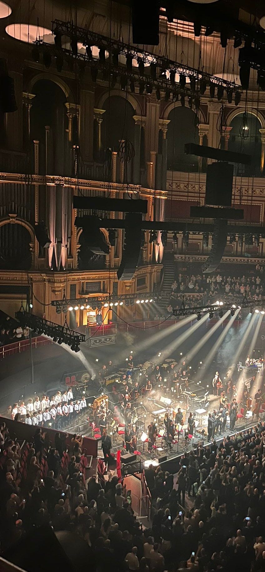 Foi a primeira vez que a banda tocou “Ára bátur” ao vivo. “Sigur Rós tocando ‘Ára Bátur’ com orquestra, órgão e um coral infantil no Royal Albert Hall é uma das coisas mais lindas que eu já vivenciei”, disse alguém no X. No vídeo de uma das performances de Ára bátur, um comentário registra que a gravação “não captou a ALTURA [caps do original] do crescendo”. Só consigo imaginar que, de olhos fechados, é como um bando de golfinhos te abraçando e te dizendo, em golfinhês, que ainda existe esperança.
