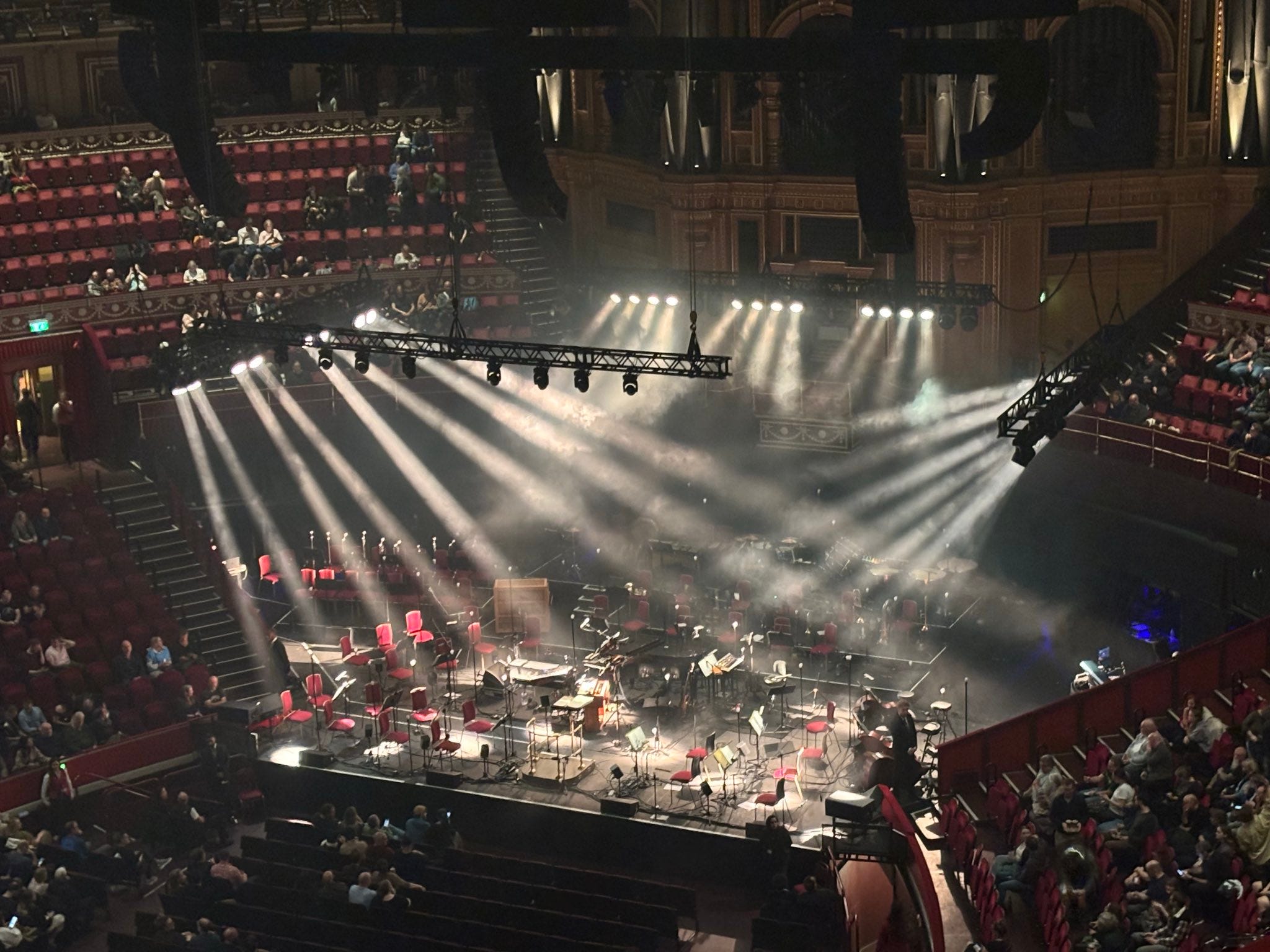 Os vídeos do Royal Albert Hall sugerem que (1) quando você tosse no Royal Albert Hall, todo o Royal Albert Hall escuta; e (2), se (1) é válido, o bumbo ressoou pelas tripas de cada pessoa que estava lá.