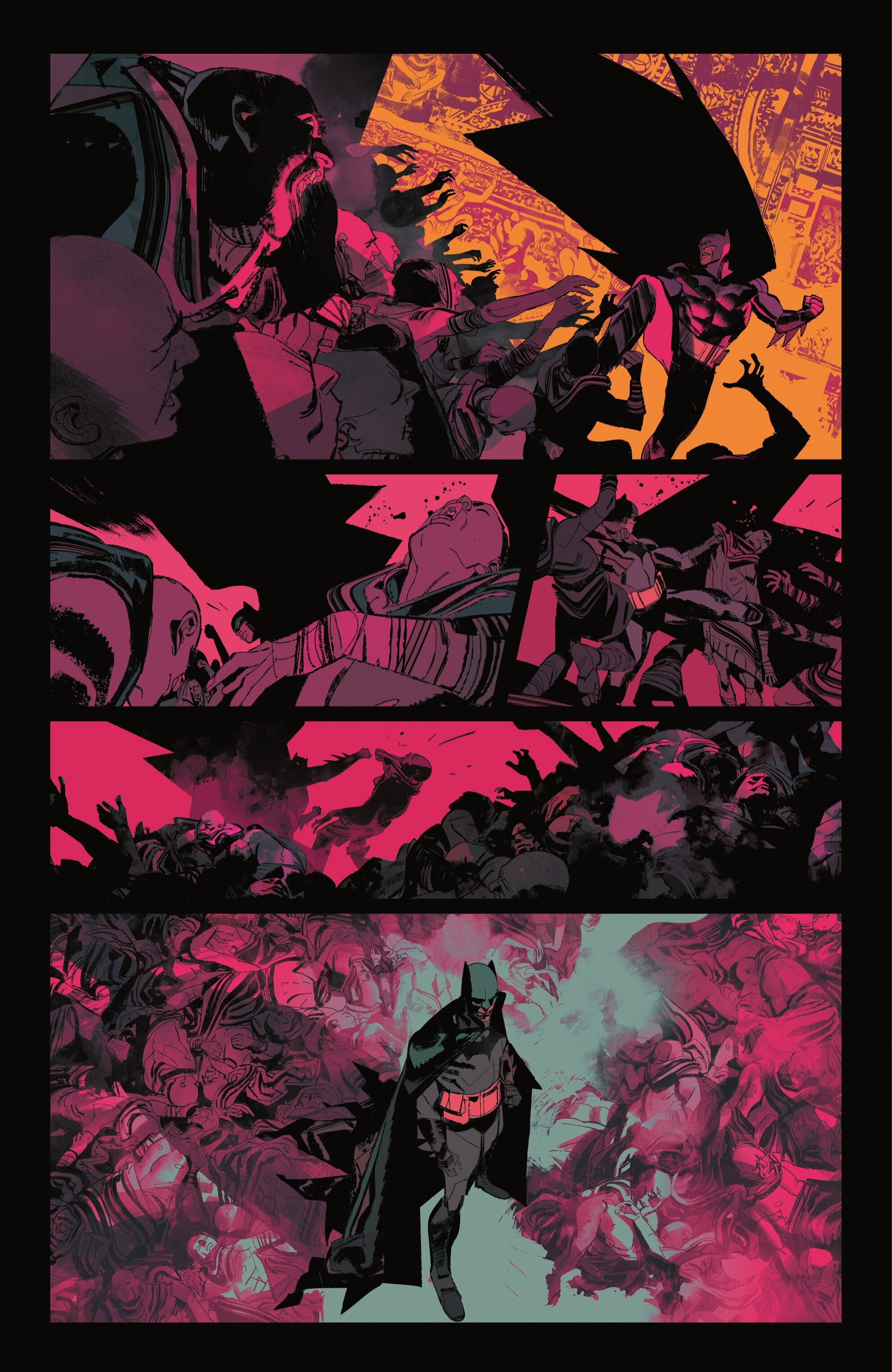 Gigi Cavenago (desenho e cores) em “Oroboros: a palindromic Batman story”, roteiro de Roberto Recchioni. Parte de ZATANNIC PANIC!, da DC. [kindle]